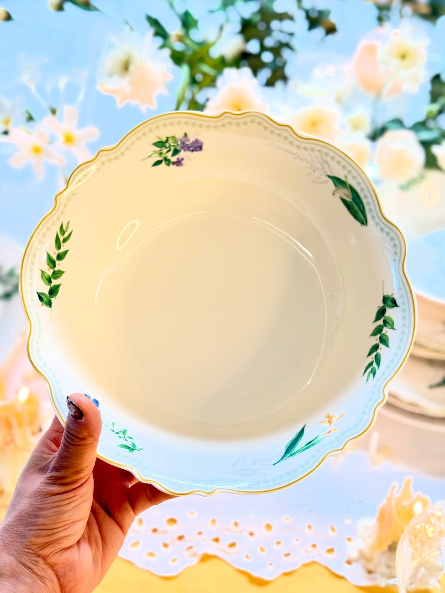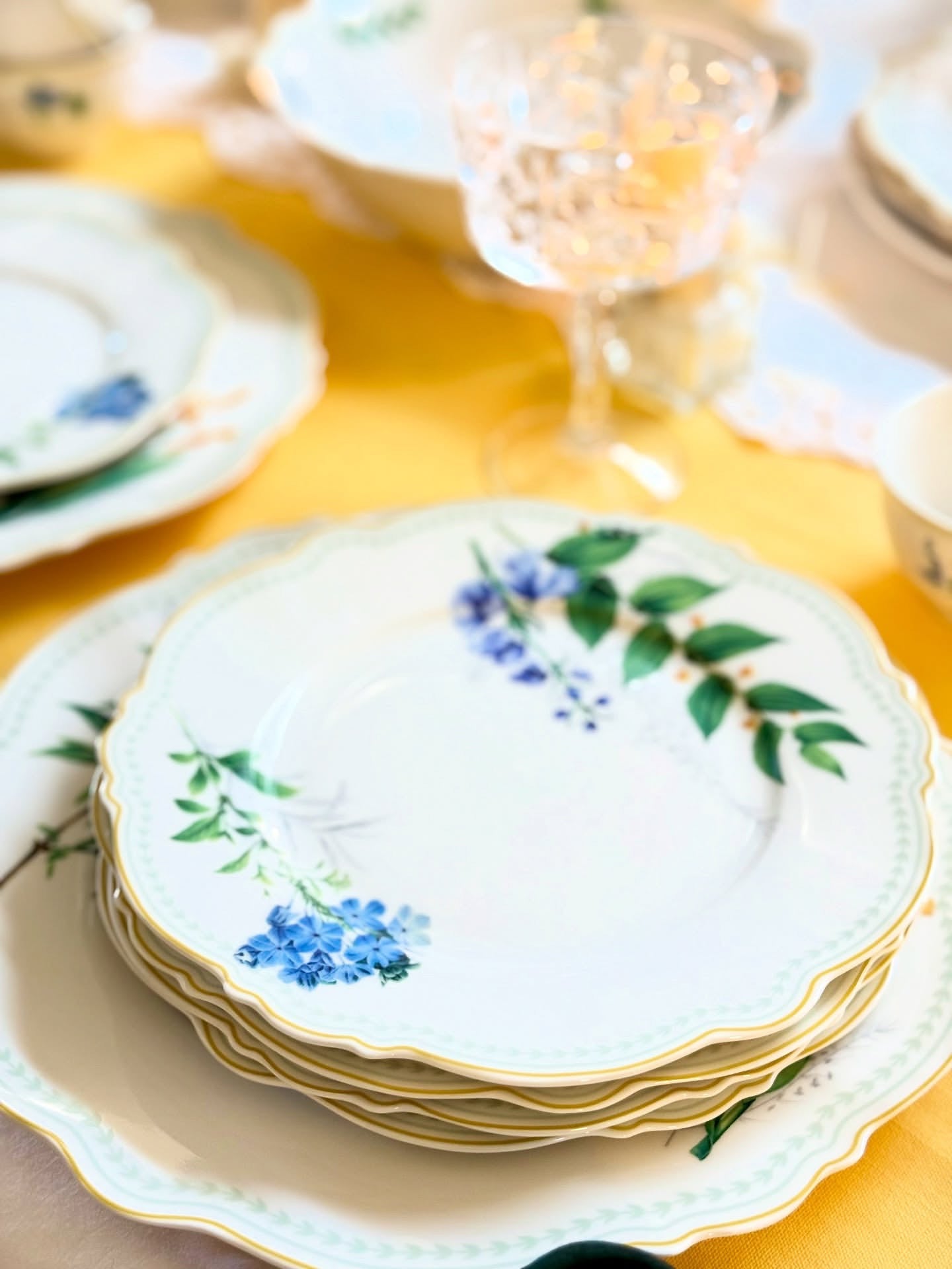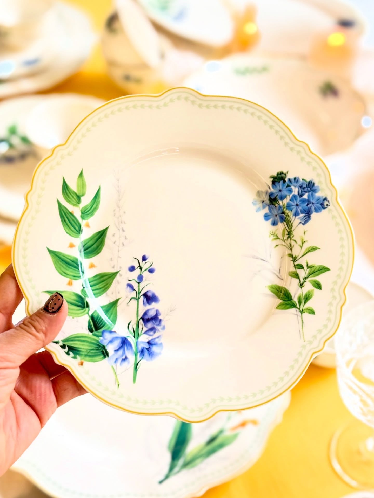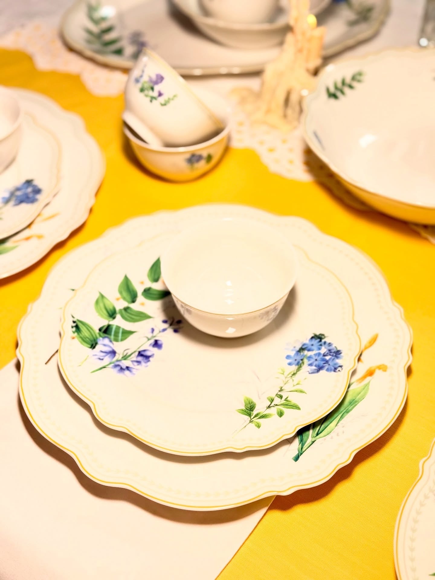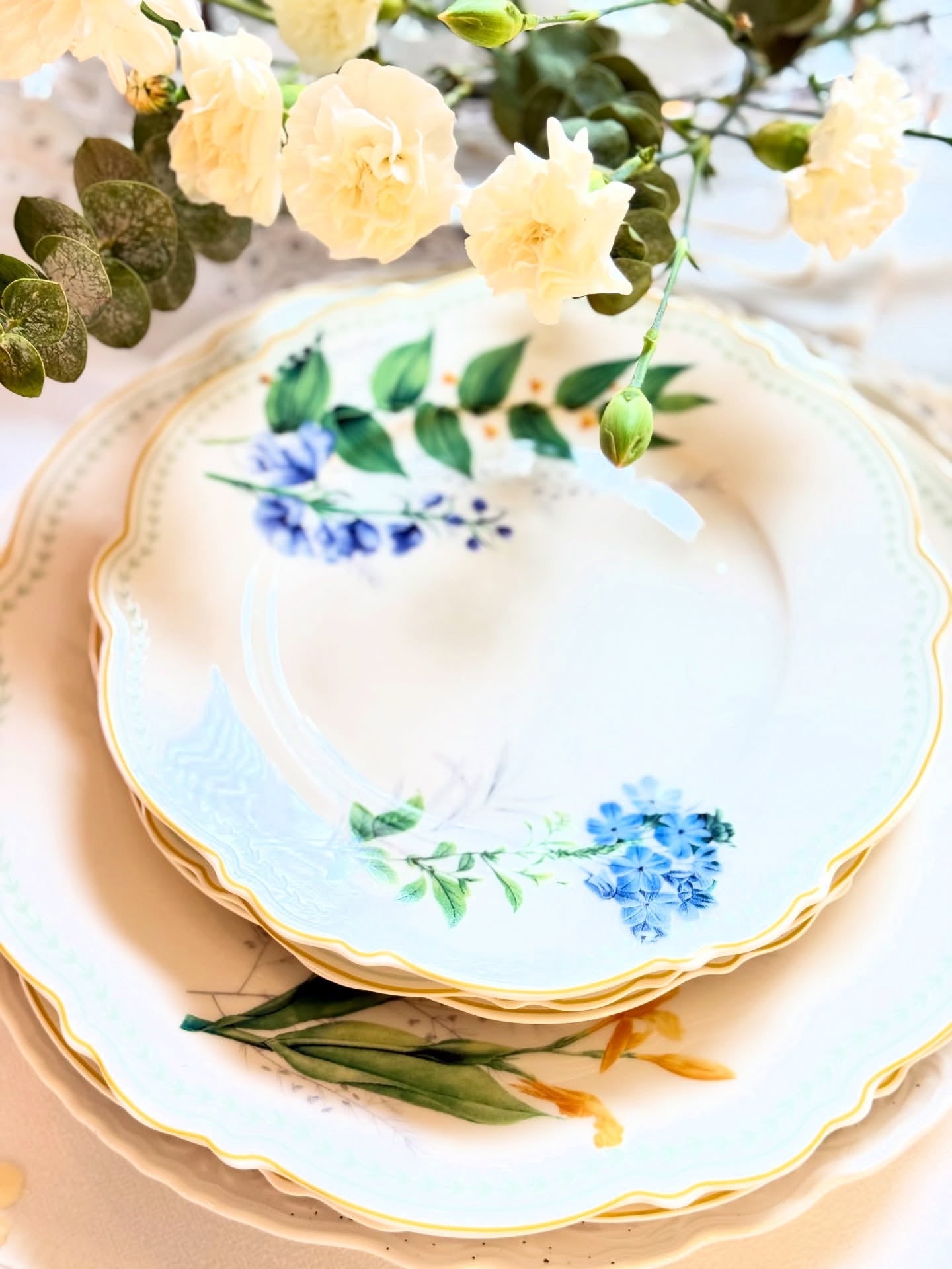 Fresh, refined, and timeless – the Azure Bloom Collection brings the elegance of watercolor florals and leafy greens to your dining table. Accented with delicate gold rims and scalloped edges, this set strikes the perfect balance between classic sophistication and modern charm. Ideal for everyday dining or hosting special occasions, it brings a refreshing touch of nature to every meal.