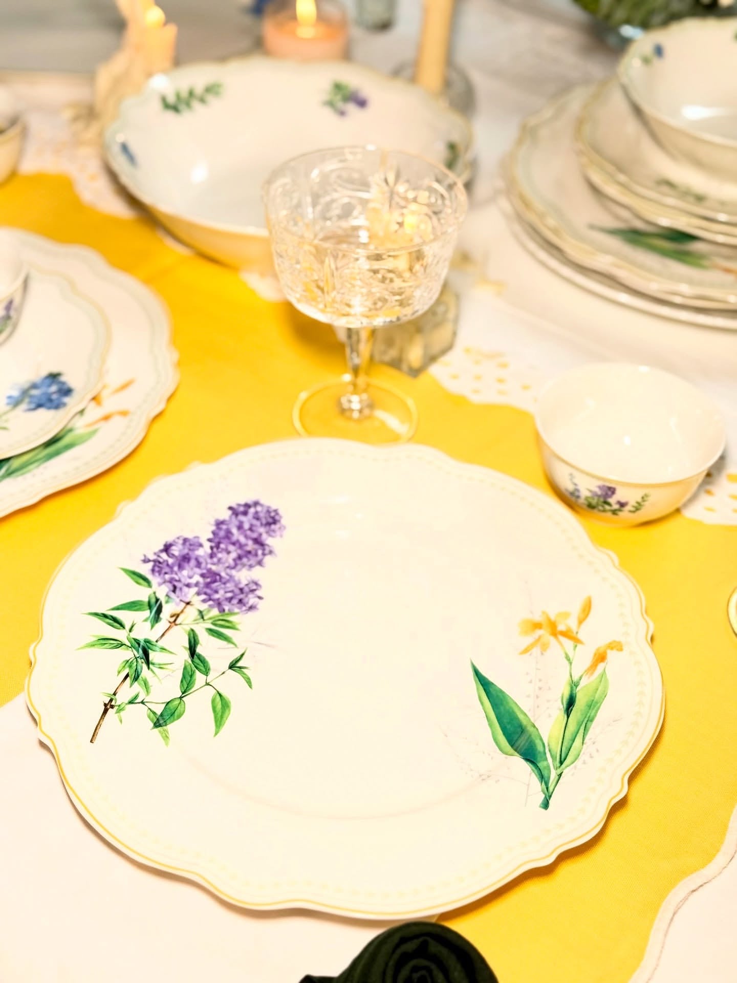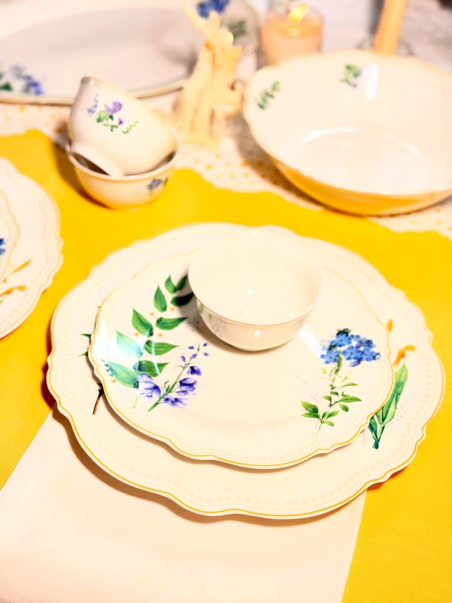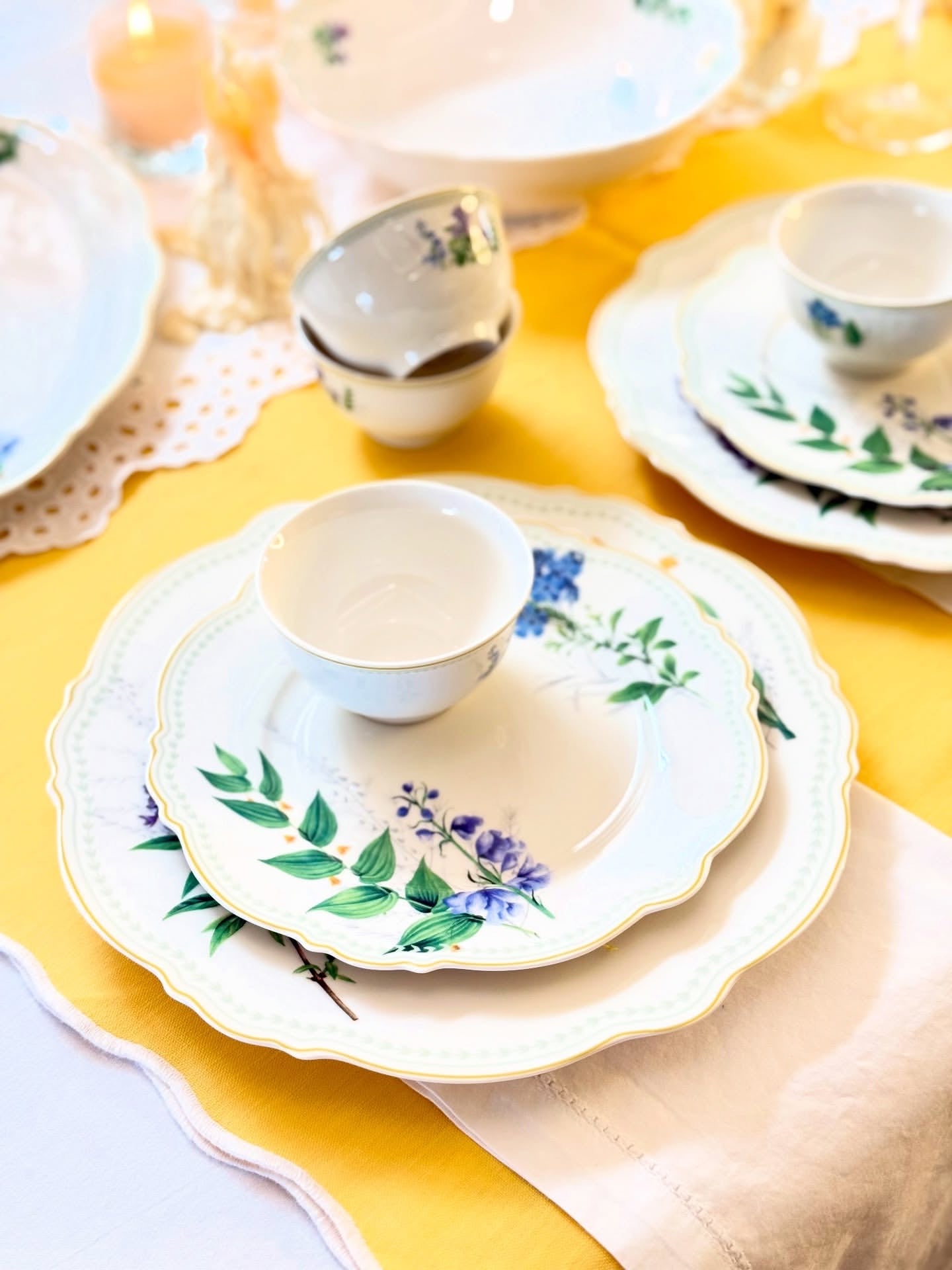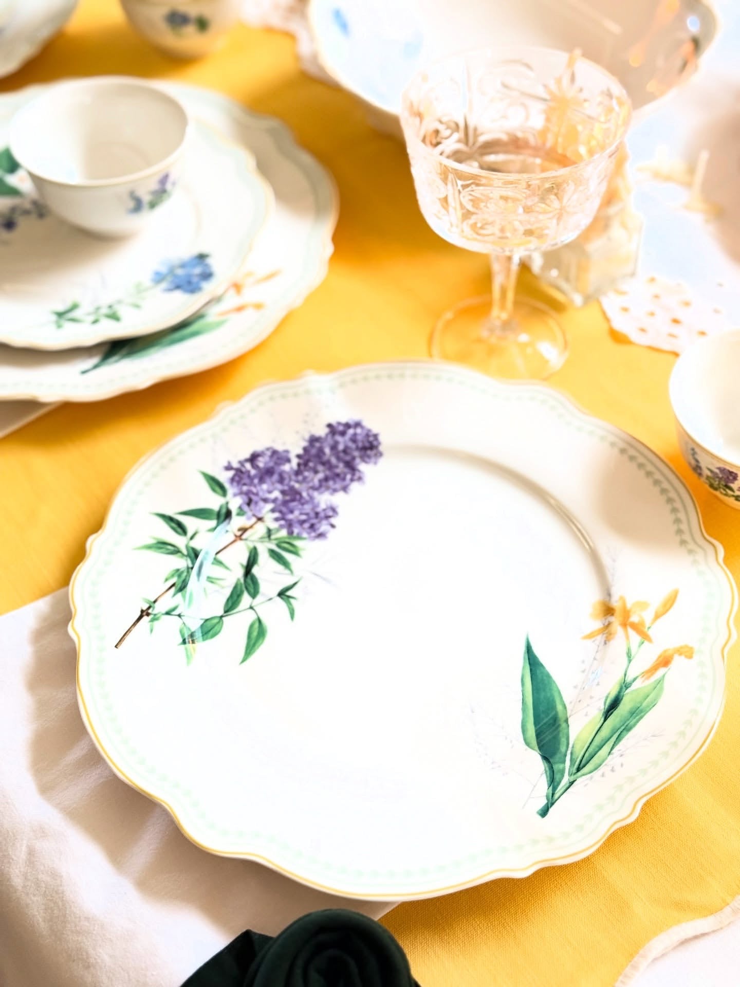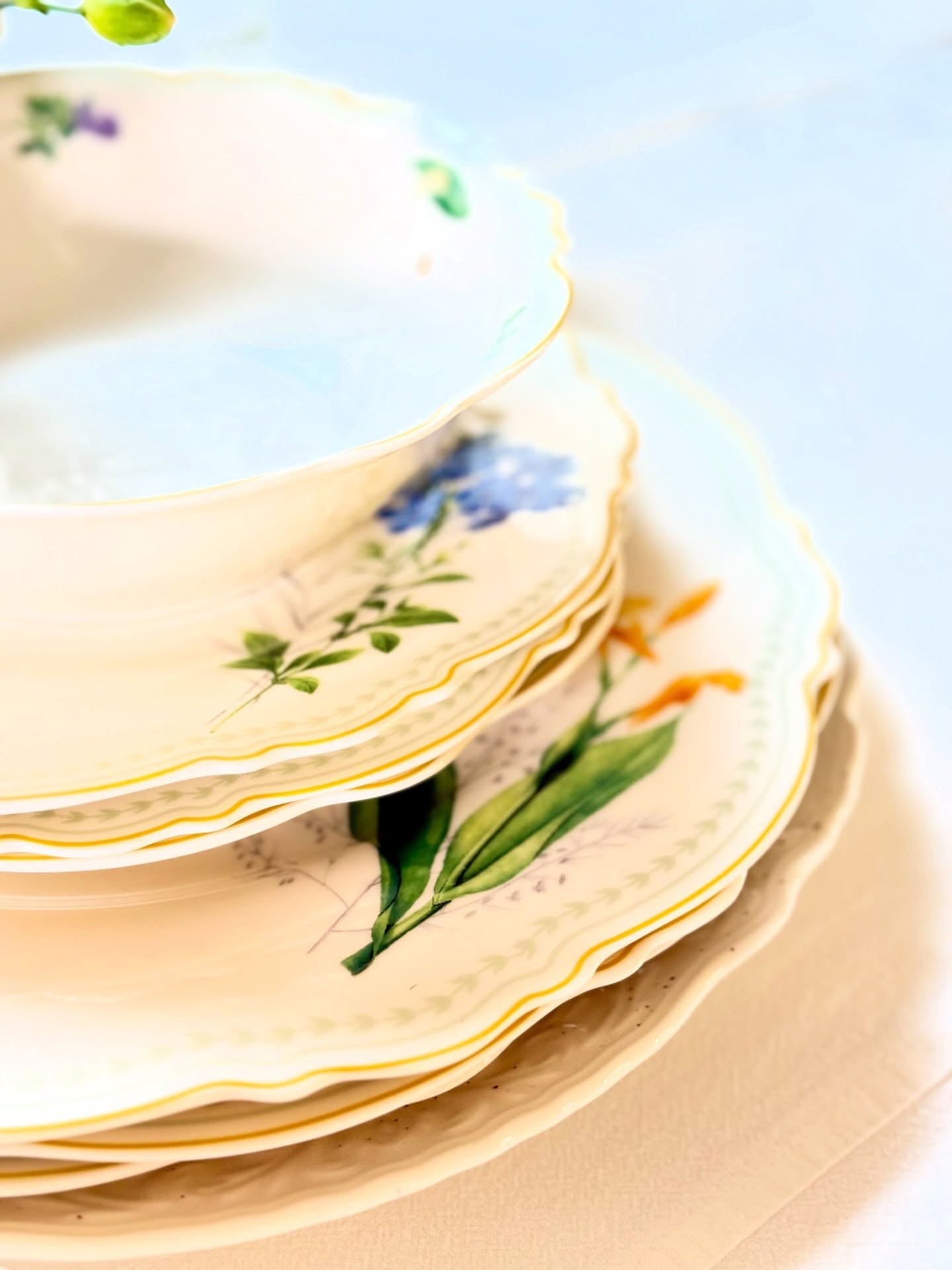 Fresh, refined, and timeless – the Azure Bloom Collection brings the elegance of watercolor florals and leafy greens to your dining table. Accented with delicate gold rims and scalloped edges, this set strikes the perfect balance between classic sophistication and modern charm. Ideal for everyday dining or hosting special occasions, it brings a refreshing touch of nature to every meal.
