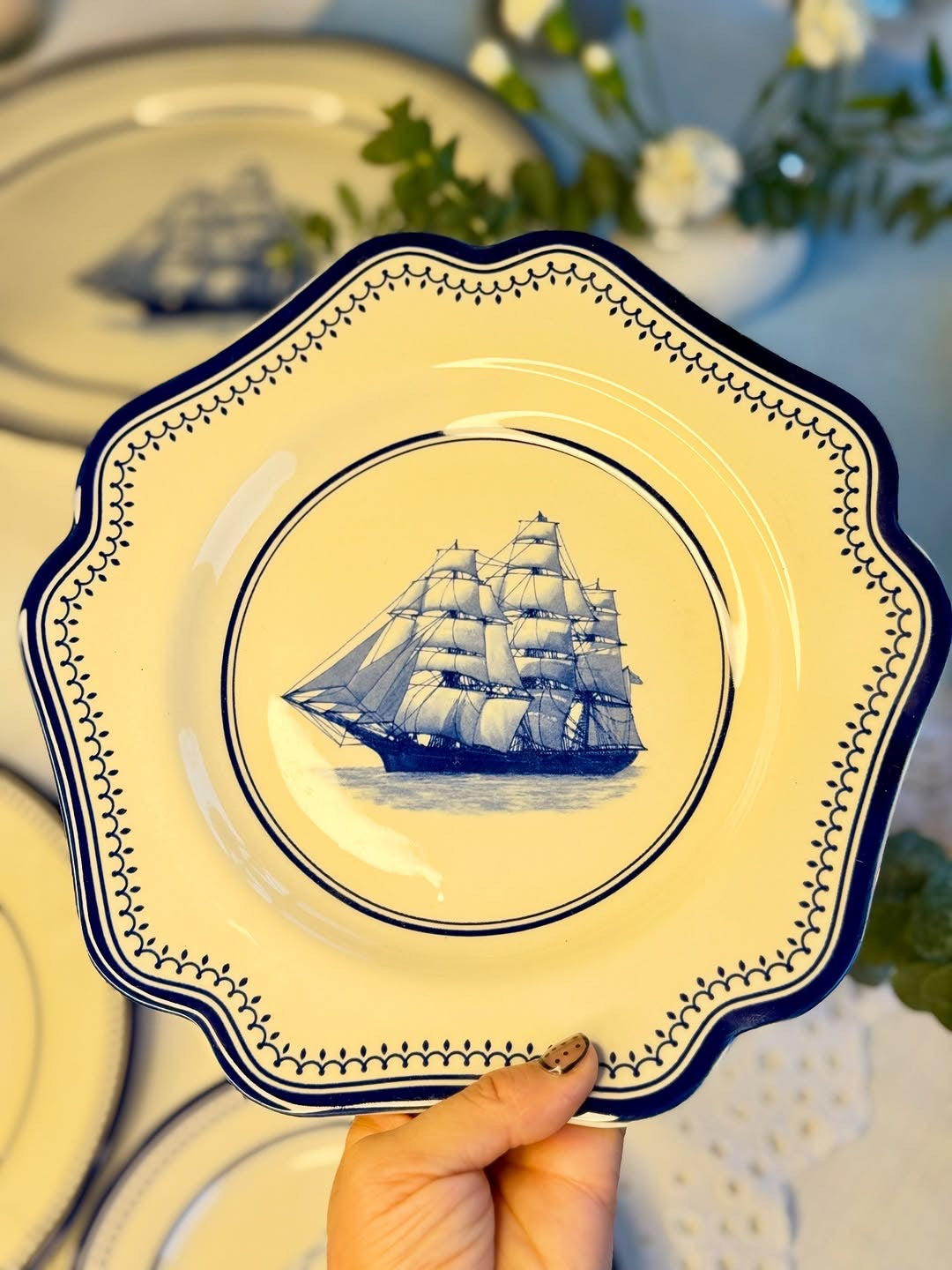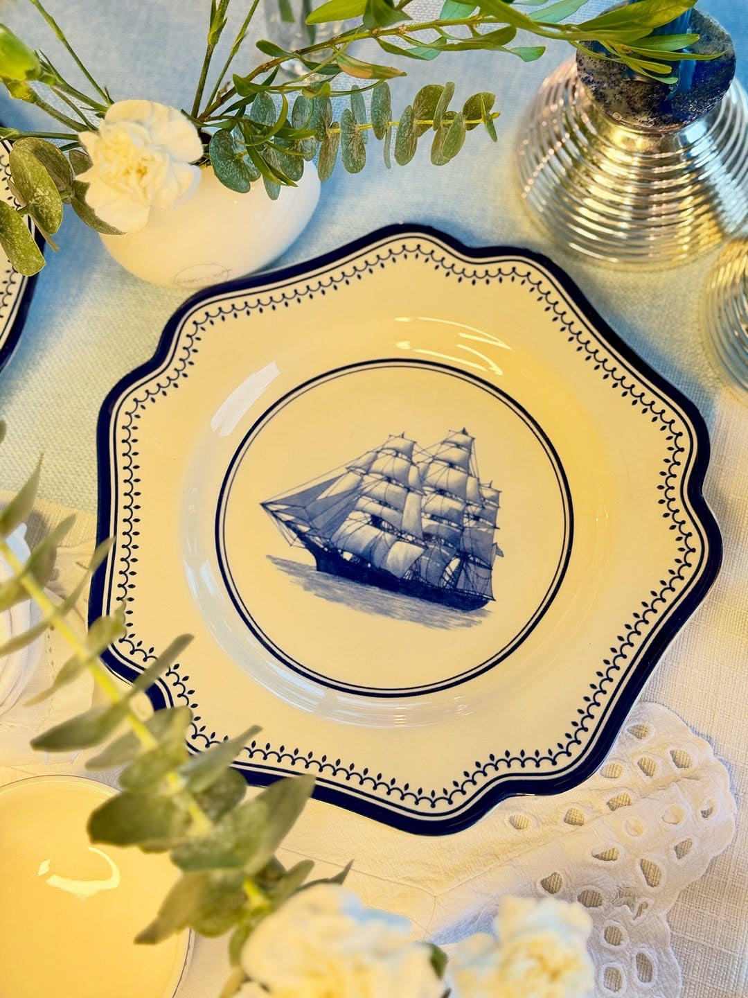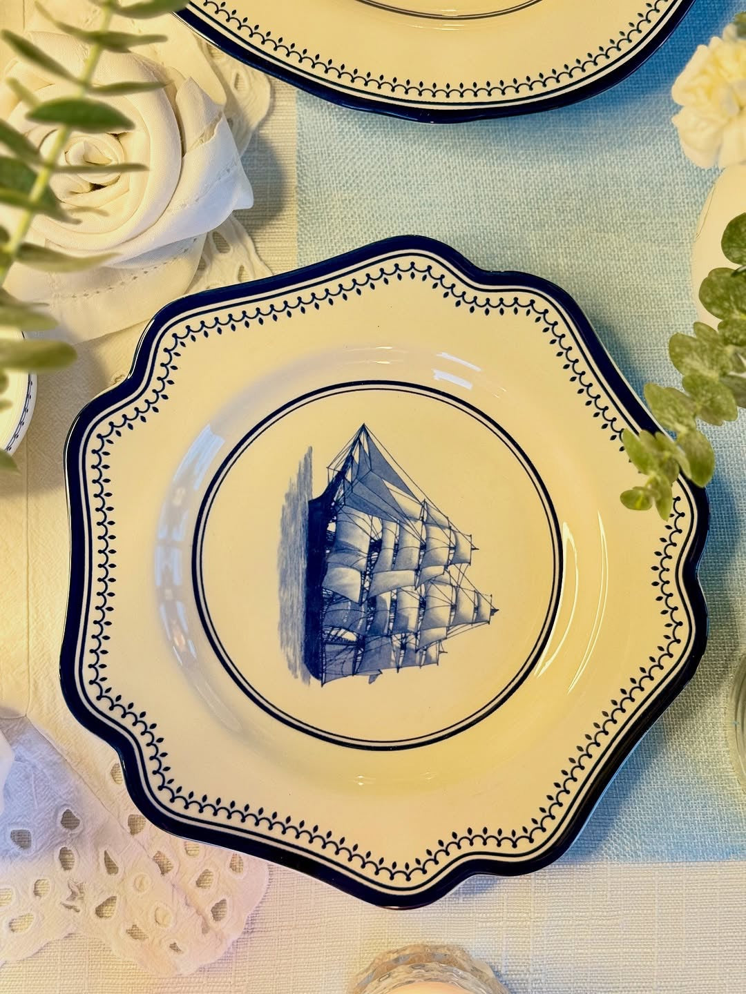 Premium porcelain with indigo clipper ship design