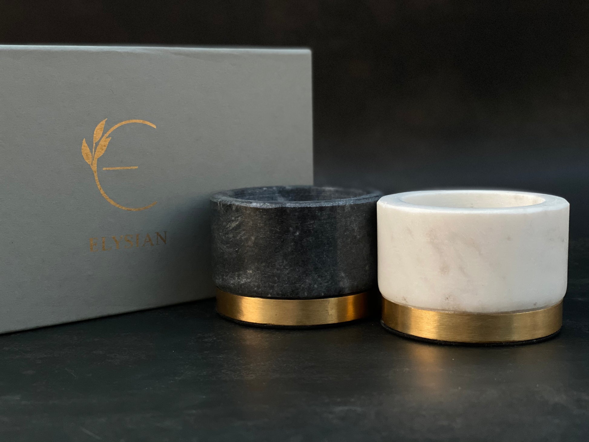 Marble & Brass Condiment Bowl Set of Two - Condiment Server, Spice Jar