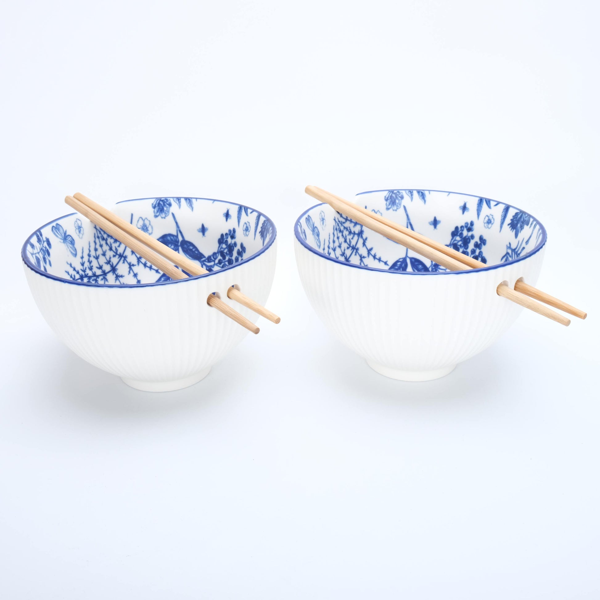 Sakura Indigo Ramen Bowl Set with Chopsticks (Set of 2)