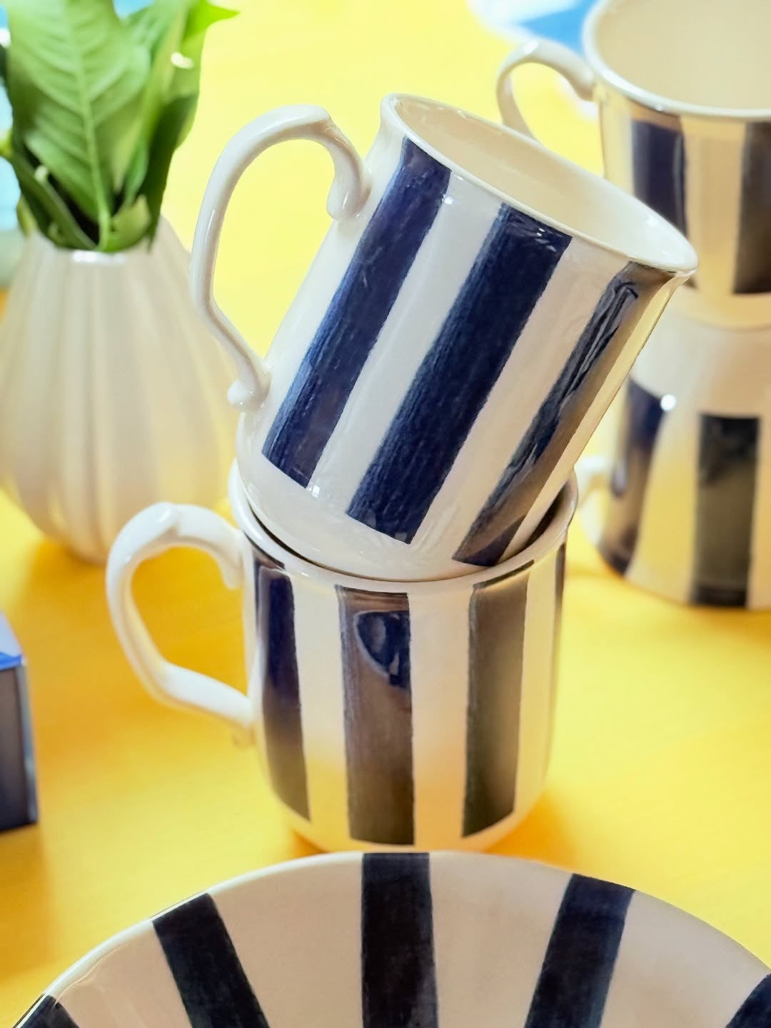 Add a splash of coastal charm to your everyday moments with the Summer in Stripes Mug Set. Featuring bold hand-painted indigo stripes on fine porcelain, this set is all about fresh, timeless style with a hint of Mediterranean flair.