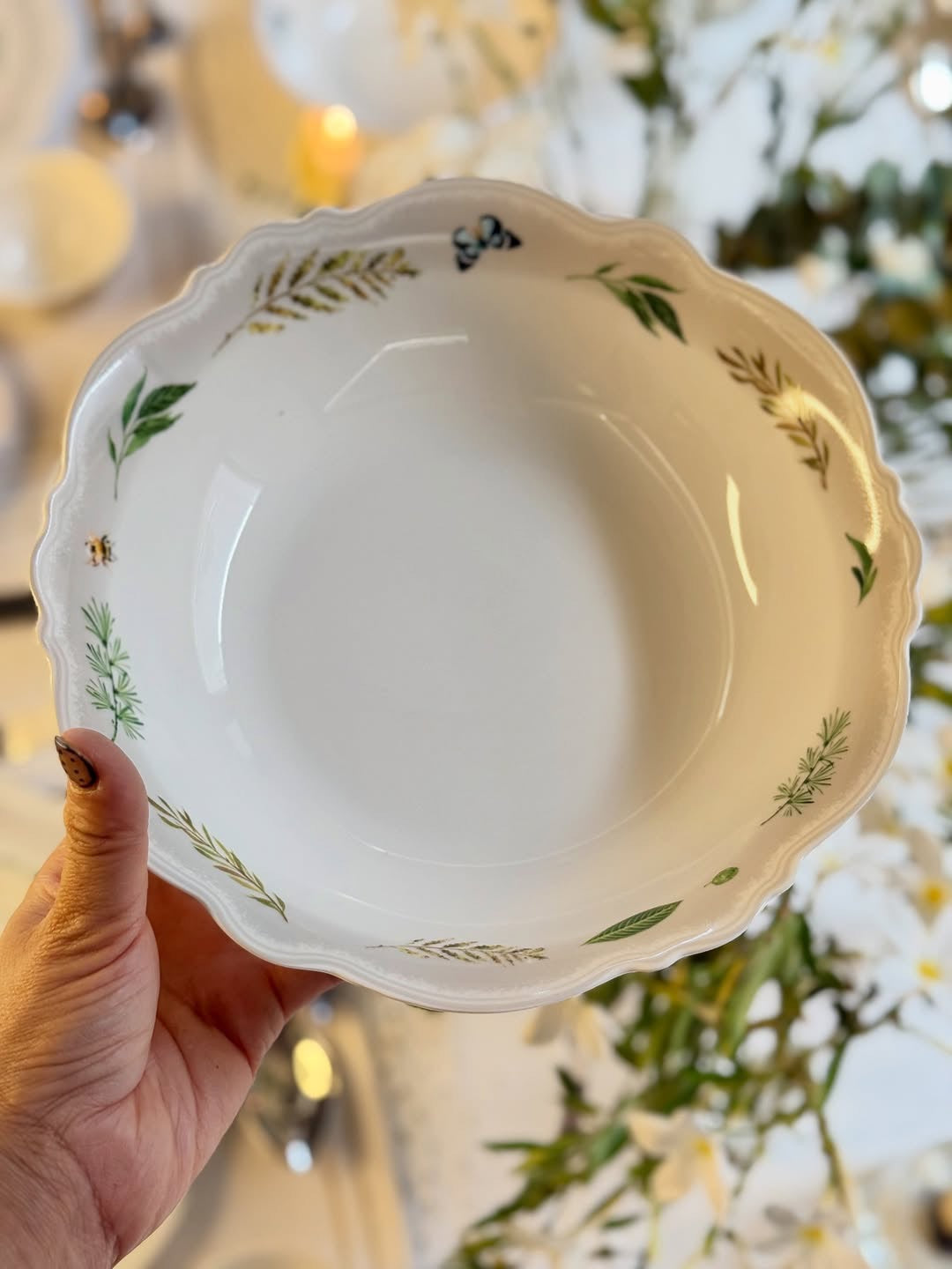 Crafted with timeless charm, this collection is perfect for everyday dining as well as elegant entertaining. Its fresh, natural palette blends seamlessly with any table setting, making every meal feel like a garden retreat.